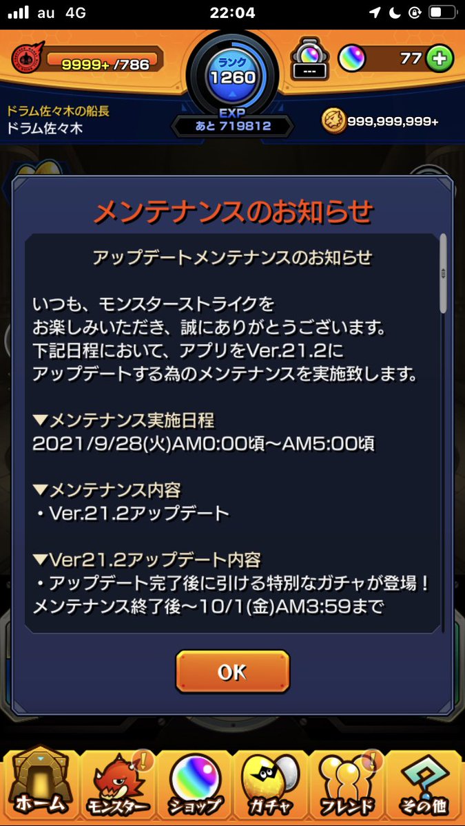 今日メンテナンス忘れてる方今日メンテなのでお気をつけて